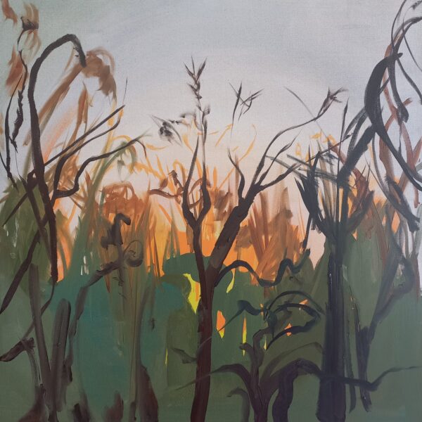 W głębi sosnowego lasu, gdzie drzewa stoją gęsto i wysoko, pierwsze intensywne promienie zachodzącego po zimie słońca przebijają się przez korony jak złote struny światła. Przesączają się między pniami, rozświetlając fragmenty kory i igliwia ciepłym, bursztynowym blaskiem.