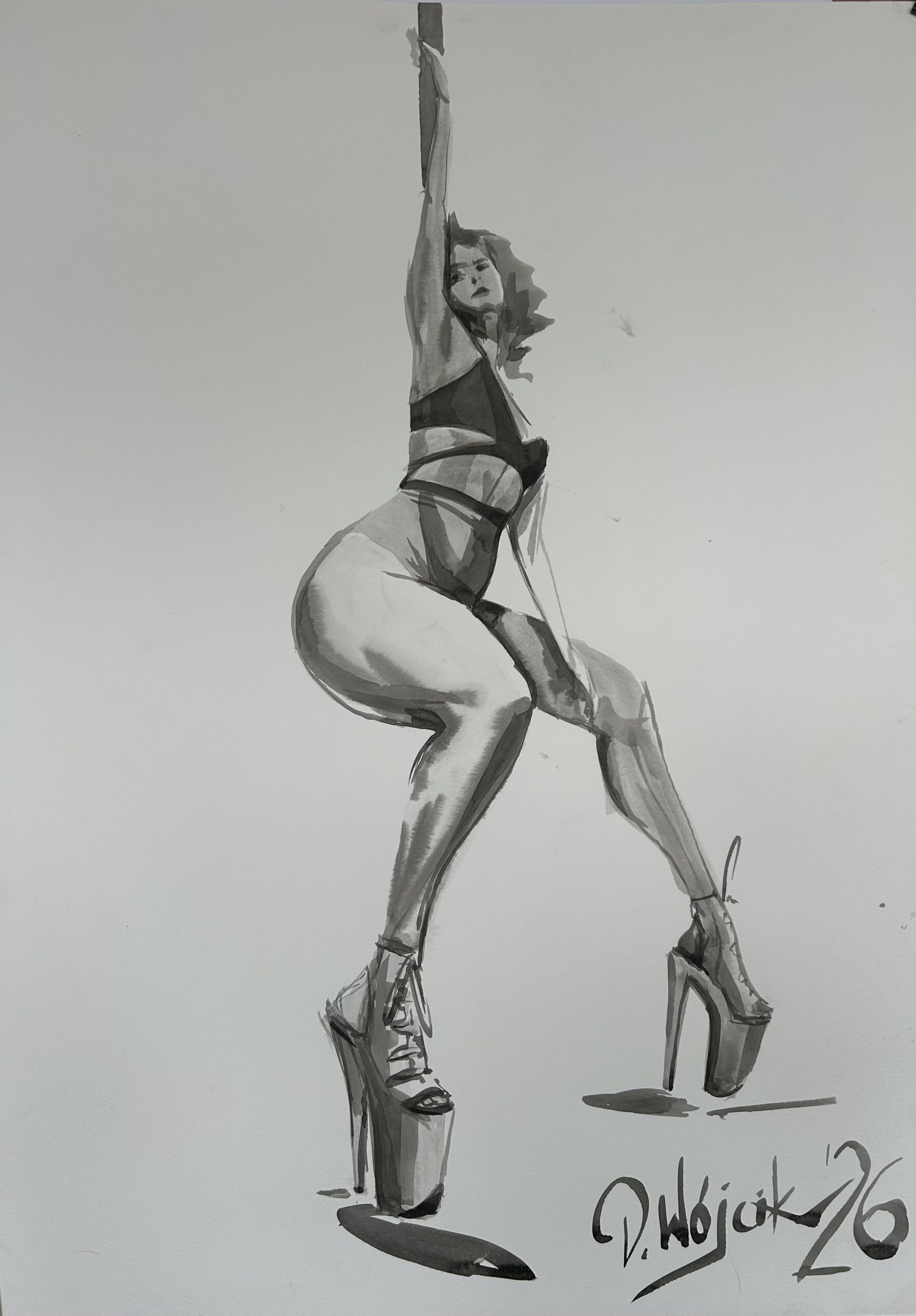 Rysunki w technice tuszu inspirowane treningami exotic pole dance ✨
